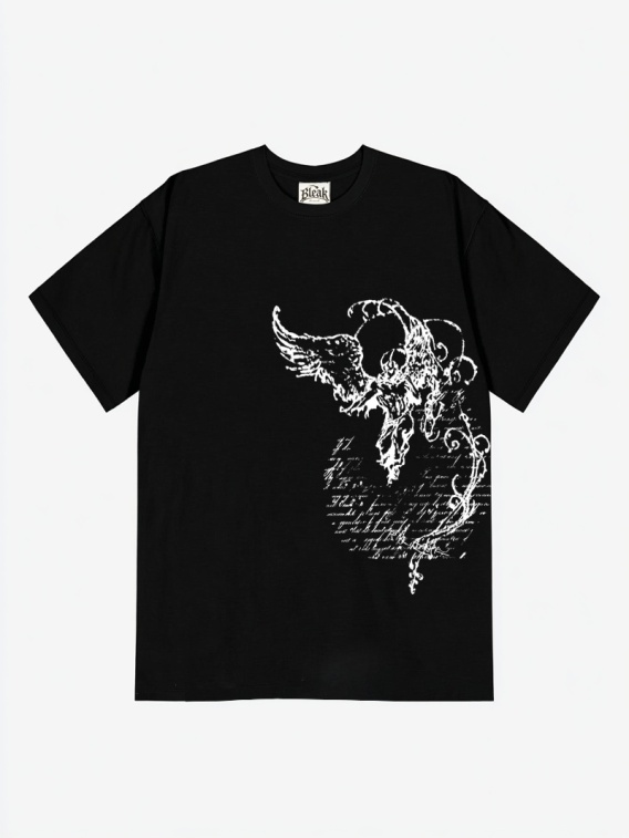 Adore Me to biała koszulka z czarnym, kaligraficznym napisem poprowadzonym pionowo wzdłuż prawej strony.